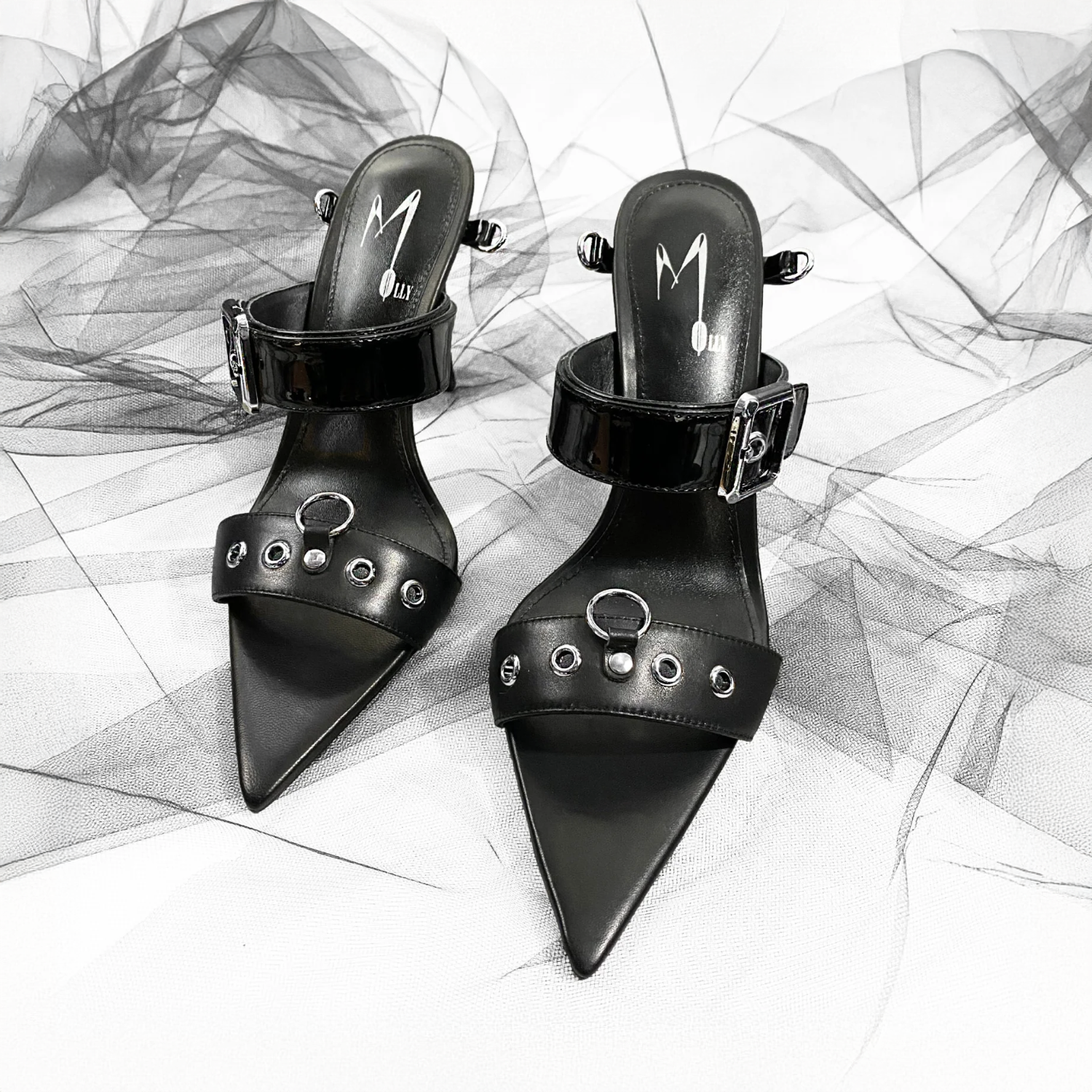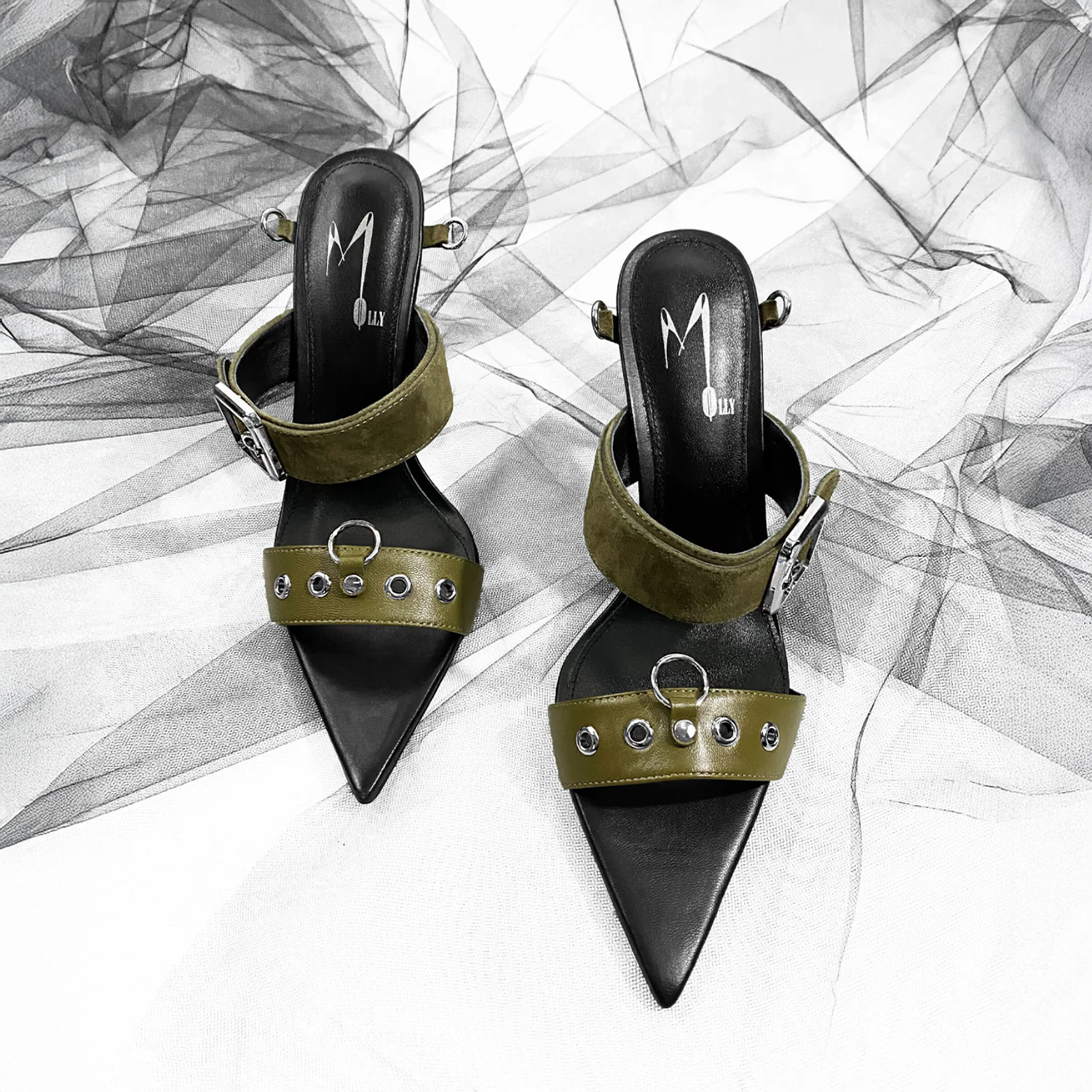 BRANDEDBYMOLLY - Interchangeable slippers with detachable uppers and silver hardware.